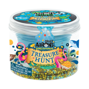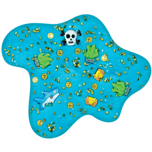 This smooth, Coconut scented, blue butter slime is packed with gold bingsu beads and hidden treasure charms waiting to be discovered.