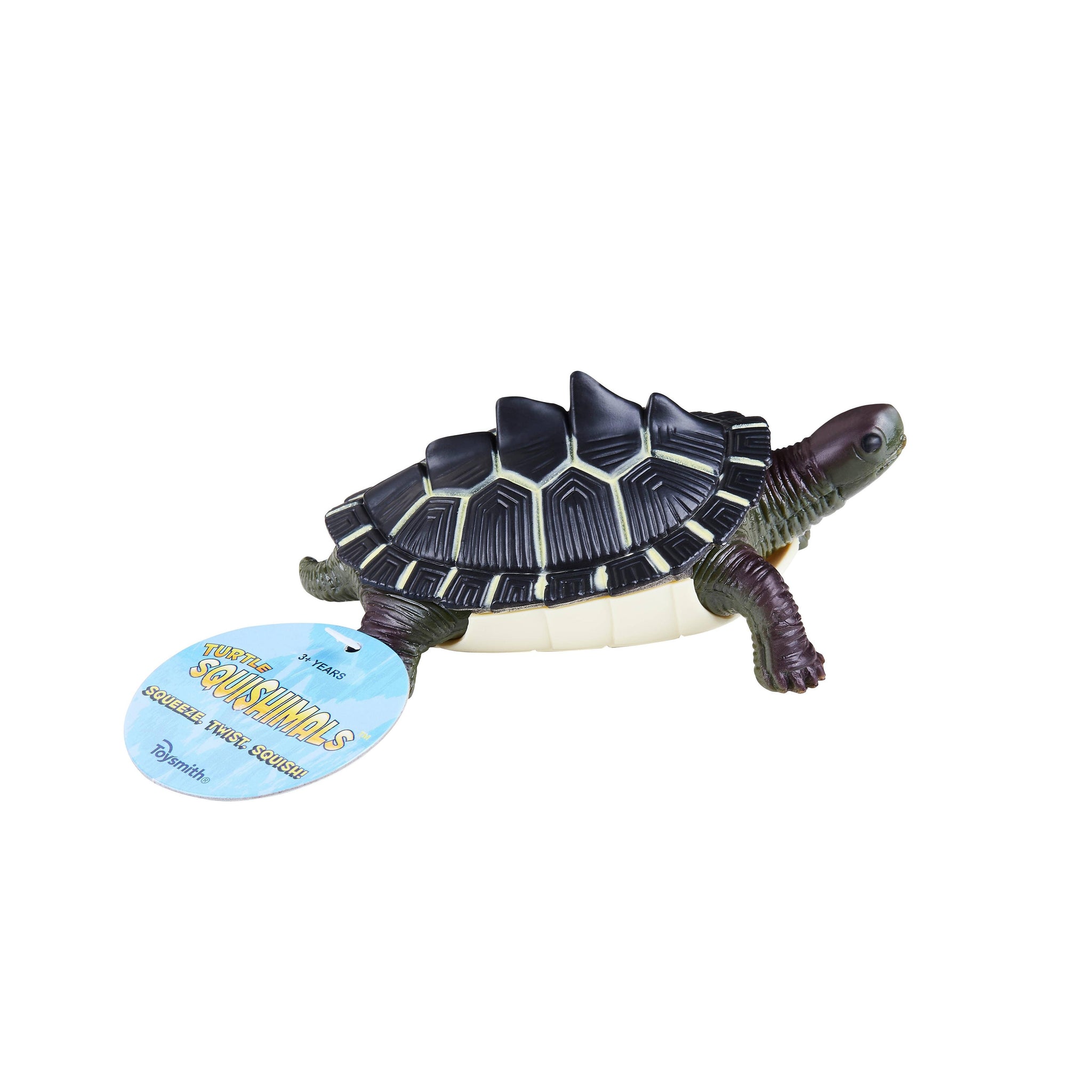These squishy turtles have hard shells. Some are sea turtles with flowing fins, while others are land or freshwater turtles with smooth or spiked shells. Colors vary.