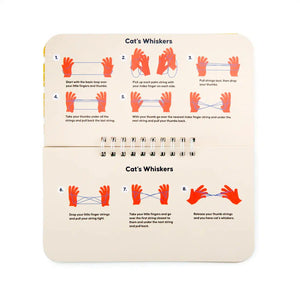 Wire-bound cat-faced books with string to create clear instructions for creating the various cat's cradles, such as Cup and Saucer, Jet Plane, Star, Cats Whiskers, and Witches Broom.