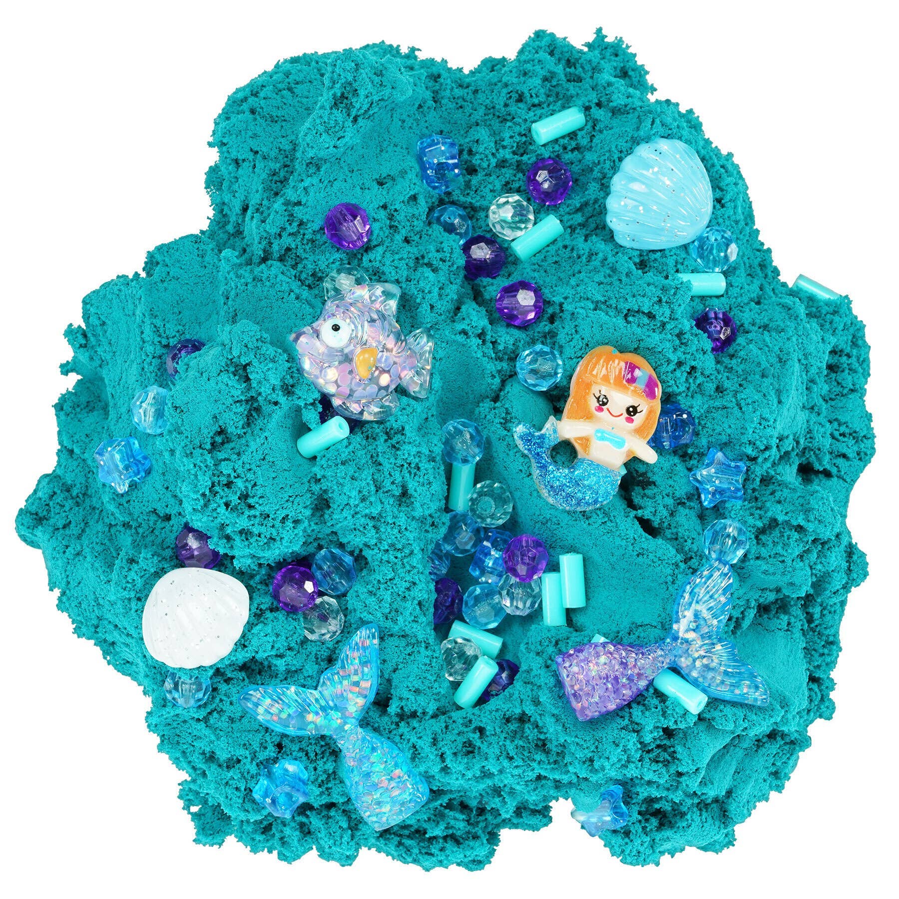 This beautiful teal cloud slime will have you creating the most amazing mermaid world. Tropical Coconut and Pineapple scent for the ultimate sensory expreience. Mix and sculpt with the magical mermaid charms including a mermaid tail, mermaids and seashells. So dive deep and discover another world!